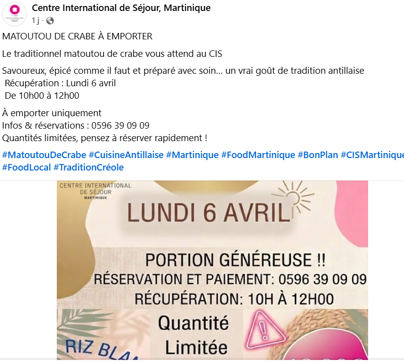 Le Calalou : Certaines familles préfèrent cette soupe épaisse à base de feuilles de madère et de crabes, un délice de textures.