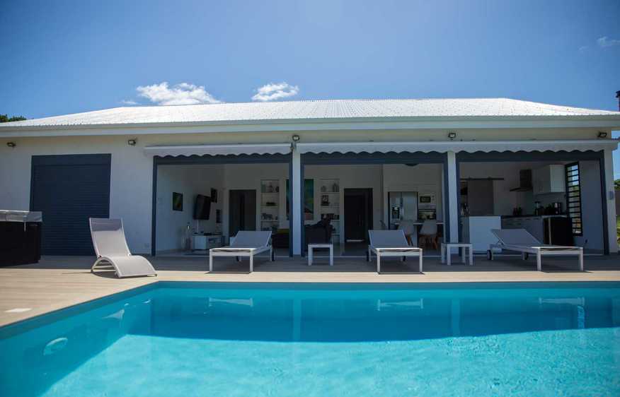 A l’extérieur, tout est pensé pour votre confort. Un grand deck encadre la piscine. Un jacuzzi et un carbet viennent compléter les aménagements extérieurs. A noter que la villa est parfaitement clôturée.