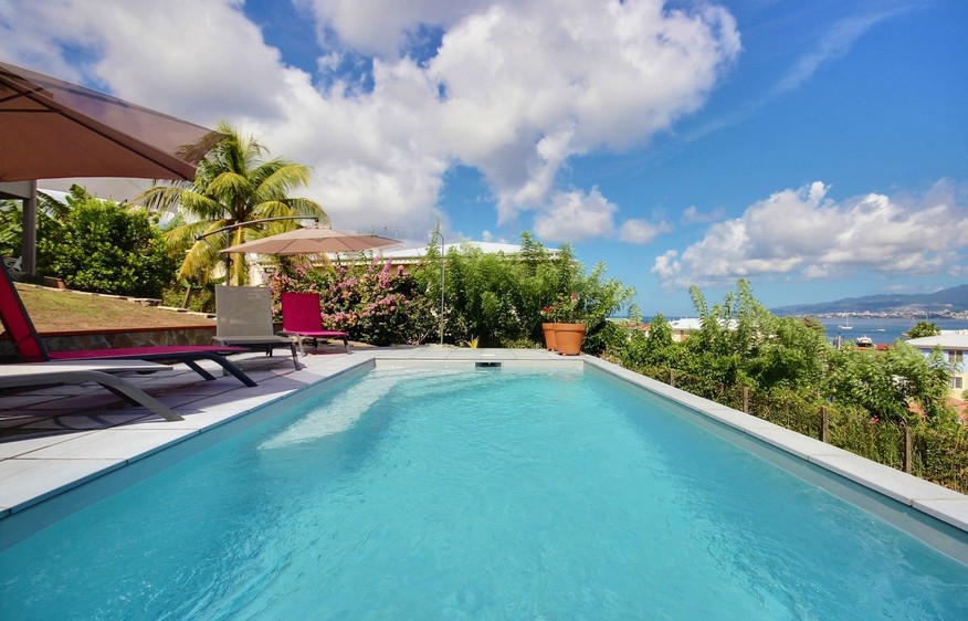 Cette location saisonnière a été entièrement rénovée par les propriétaires, qui ont porté beaucoup de soin au confort de leurs vacanciers. Composée sur deux niveaux, la partie principale de la villa se trouve à l’étage, et offre ainsi un magnifique point de vue sur la baie de Fort de France. A ce niveau se trouvent trois chambres, tandis qu’à l’étage inférieur se trouve un studio indépendant. Cette location de vacances peut ainsi accueillir 8 personnes, idéal pour des vacances en famille ou entre amis.