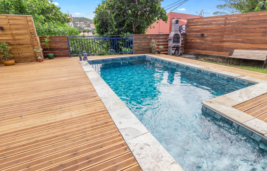 A l’extérieur, une belle terrasse encadre la grande piscine de 7m*4m (avec 2 transats). Un barbecue en dur vous permettra de préparer vos grillades de poisson à acheter au pêcheur de l’anse mitan.